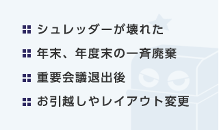 個人情報等はシュレッダーの使用を徹底していたが、現実は処理能力の低さや、廃棄を後回しにすることも多く、限界を感じて導入を決定しました。 今では情報管理が徹底できています。